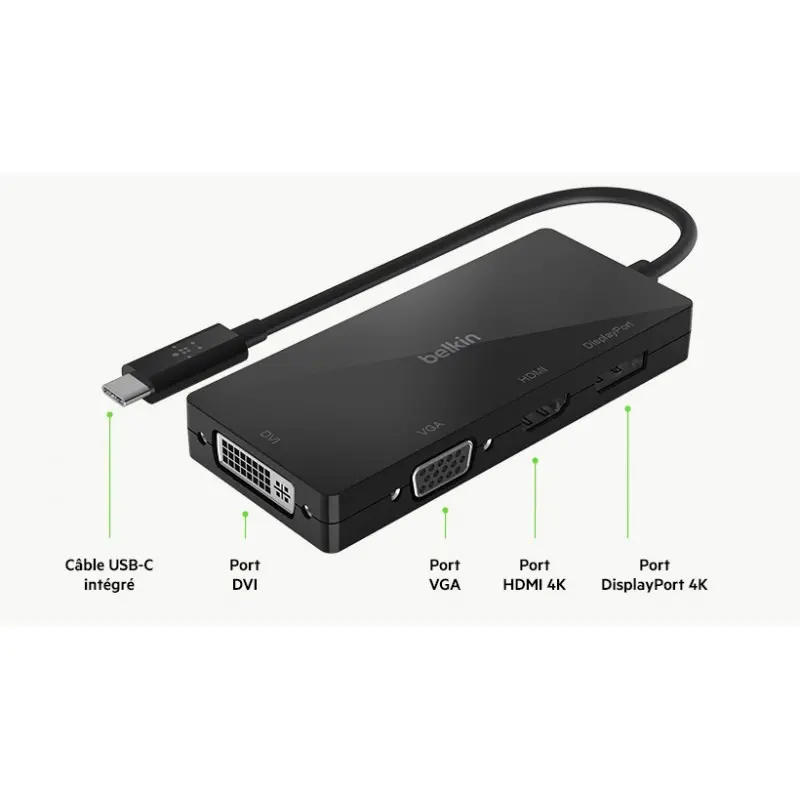 - Adaptateur vidéo Belkin USB Type C vers HDMI, VGA, DisplayPort et DVI