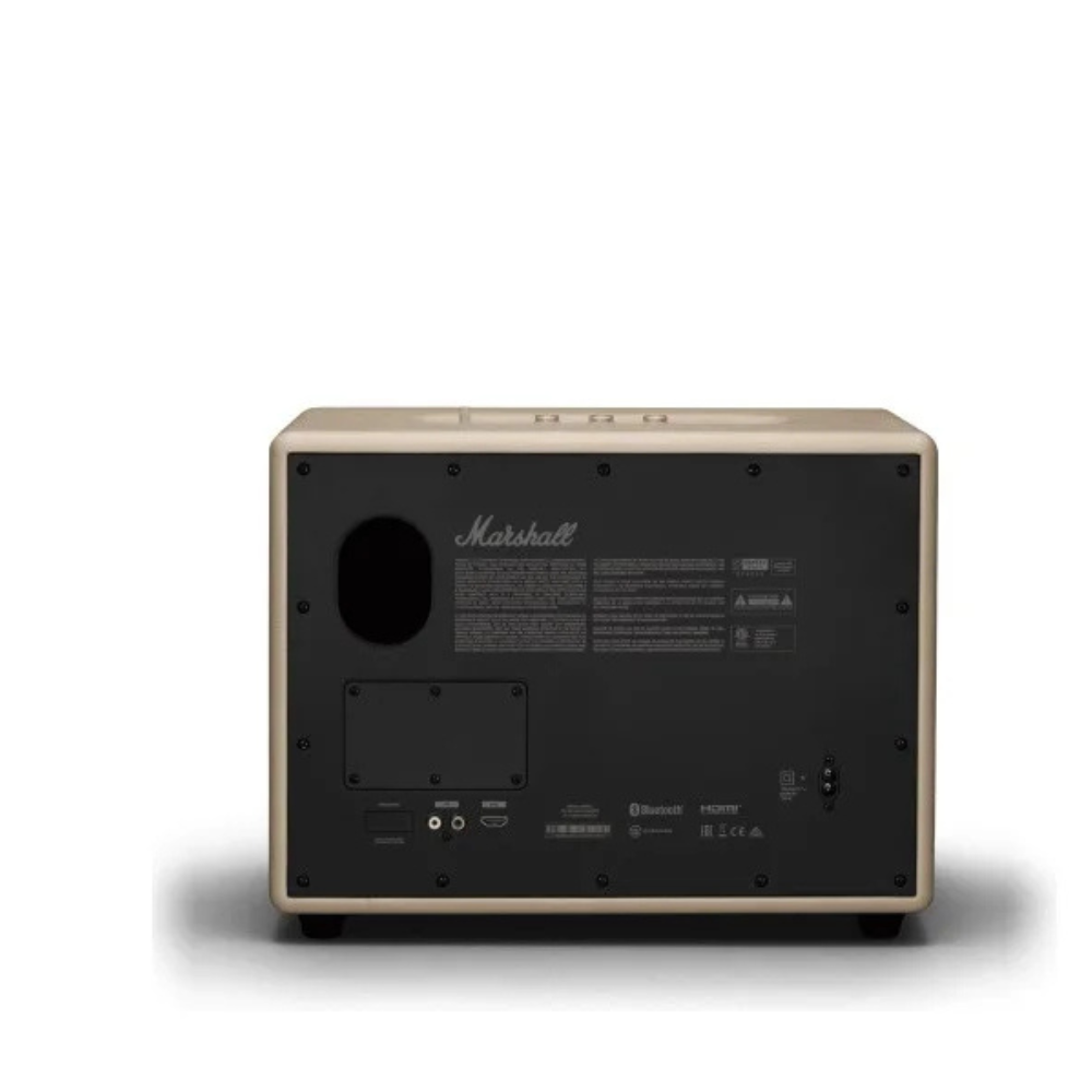 Le Haut Parleur Bluetooth Marshall Woburn III en Crème , conçu pour les amateurs exigeants de musique, associe puissance, élégance et technologie moderne. Équipé de la connectivité Bluetooth 5.2, il offre une transmission sans fil fluide jusqu’à 10 mètres, tout en conservant une qualité audio irréprochable. Avec sa puissance audio impressionnante – un amplificateur de 90 W pour les woofers et quatre amplificateurs de 15 W dédiés aux médiums et aux tweeters – ce haut-parleur garantit des basses profondes, des médiums équilibrés et des aigus cristallins. Sa large plage de fréquences de 35 Hz à 20 000 Hz permet de redécouvrir chaque détail de vos morceaux préférés. Il dispose de plusieurs options de connexion : prise jack 3,5 mm, entrée RCA et entrée HDMI, adaptées à tous vos besoins. Ses commandes intégrées vous donnent un contrôle total : sélection de la source, réglage du volume, gestion des basses et aigus, ainsi que lecture, pause et navigation entre les pistes. Avec son design iconique Marshall, ses dimensions de 400 x 317 x 203 mm et son poids de 7,45 kg, le Woburn III allie robustesse et style intemporel. Idéal pour la maison ou un espace professionnel, il s’impose comme une référence incontournable en matière de son.
